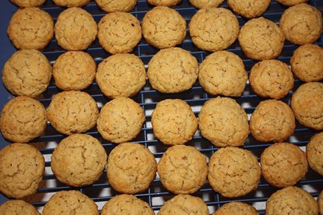 Kleine Kugeln formen, die mit genügend Abstand auf ein eingefettetes Blech gelegt werden und bei 200 Grad ca. 10 Minuten backen.